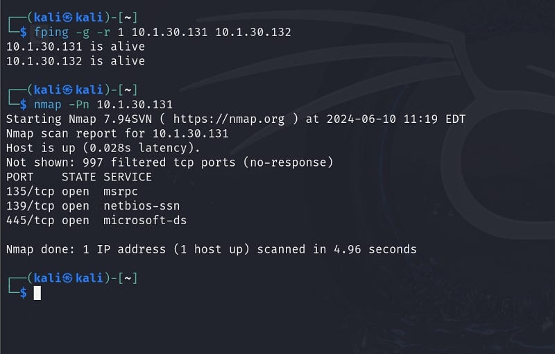 We’ll be able to interact with the new network from our Kali machine and run all the same tools as we did with the single pivot.
