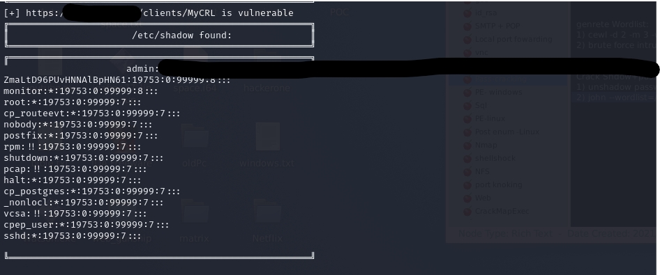 Now after you find both file passwd & shadow you can try crack the hash with JohnTheRipper, after running the exploit you have 2 files, passwd & shadow, so you can merge them into one file and try crack them (I used rockyou.txt but it can be any password wordlist):
